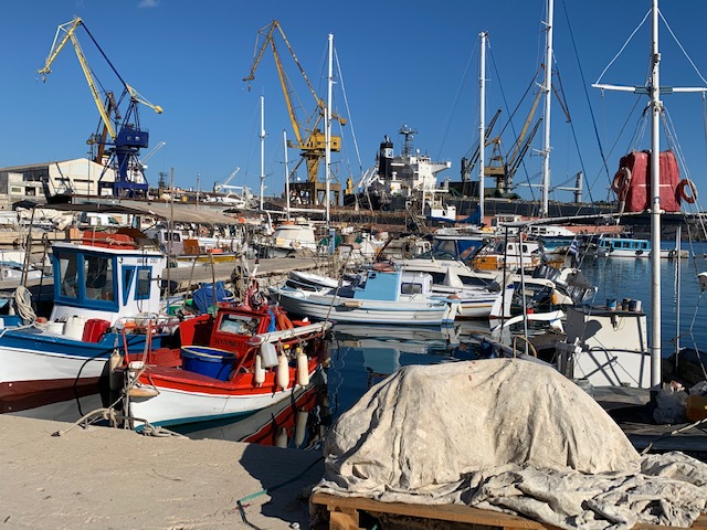 The harbour ‘north wall’ where we usually go is full of cafes, shops and restaurants geared more for tourists, who in the main are Greek, so not many international visitors apart from the yachts.  The marina is situated in a more local area and close to the fisherman’s harbour.