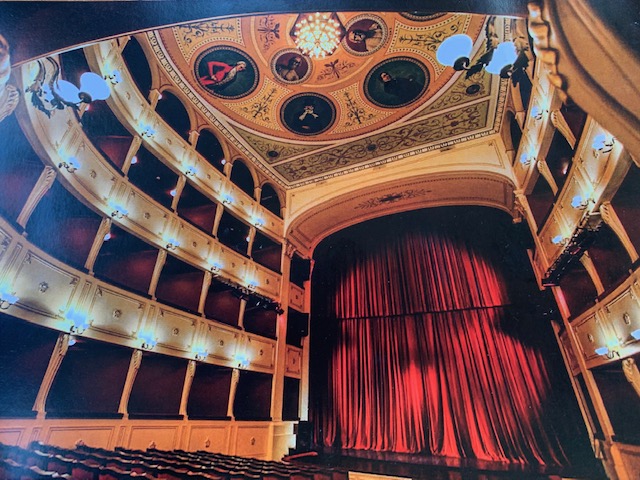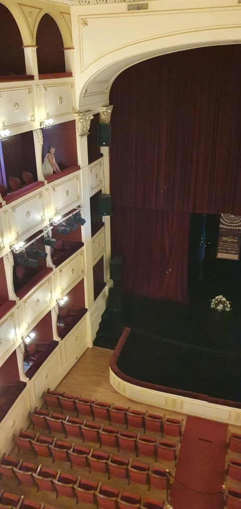 Stamatis had mentioned the theatre being worth a visit so we went there too.  Apollon Theatre was a lovely surprise, the architecture inspired by La Scala Milan and other notable Italian theatres.  We found it a little treasure.   It is sad, we would have loved to have attended a production.  During the war it was used by Italians and then Germans as a cinema and upstairs there was a small display of posters, costumes and artefacts and starlets from that era.  No buses ran on Sunday so we walked back.
